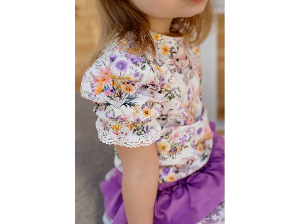 Halenka a body s nádherným vzorem květin a zajíčků.