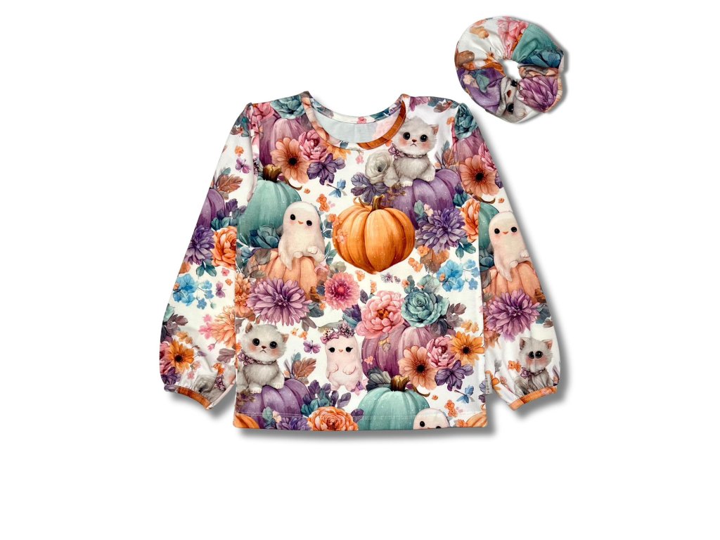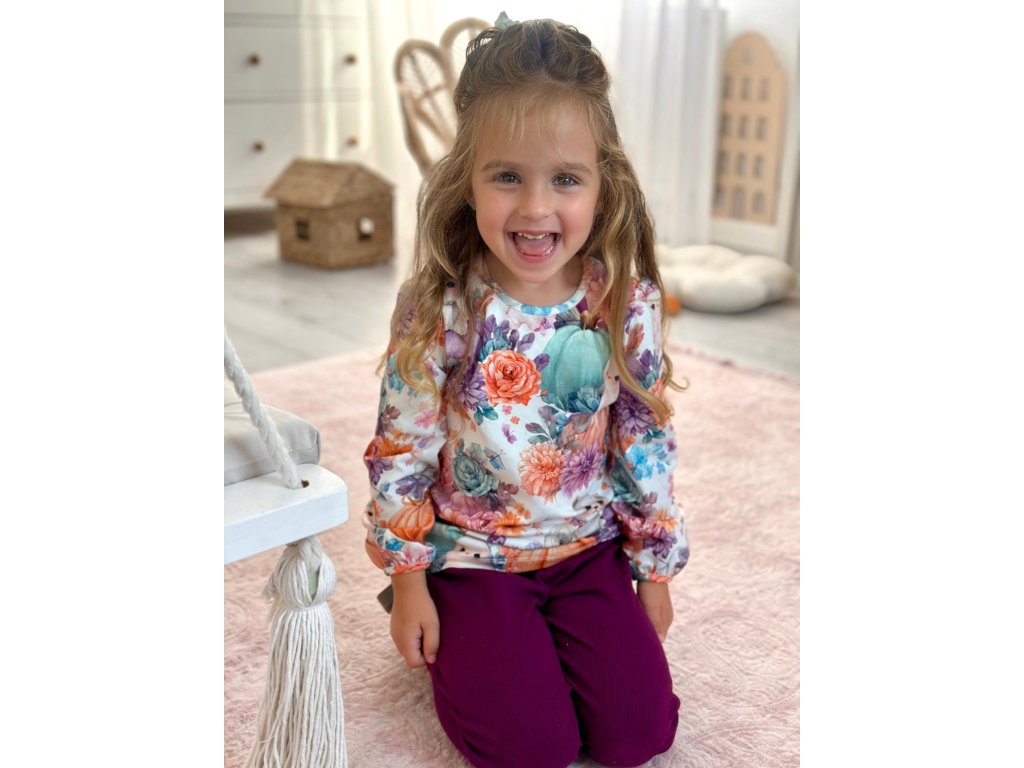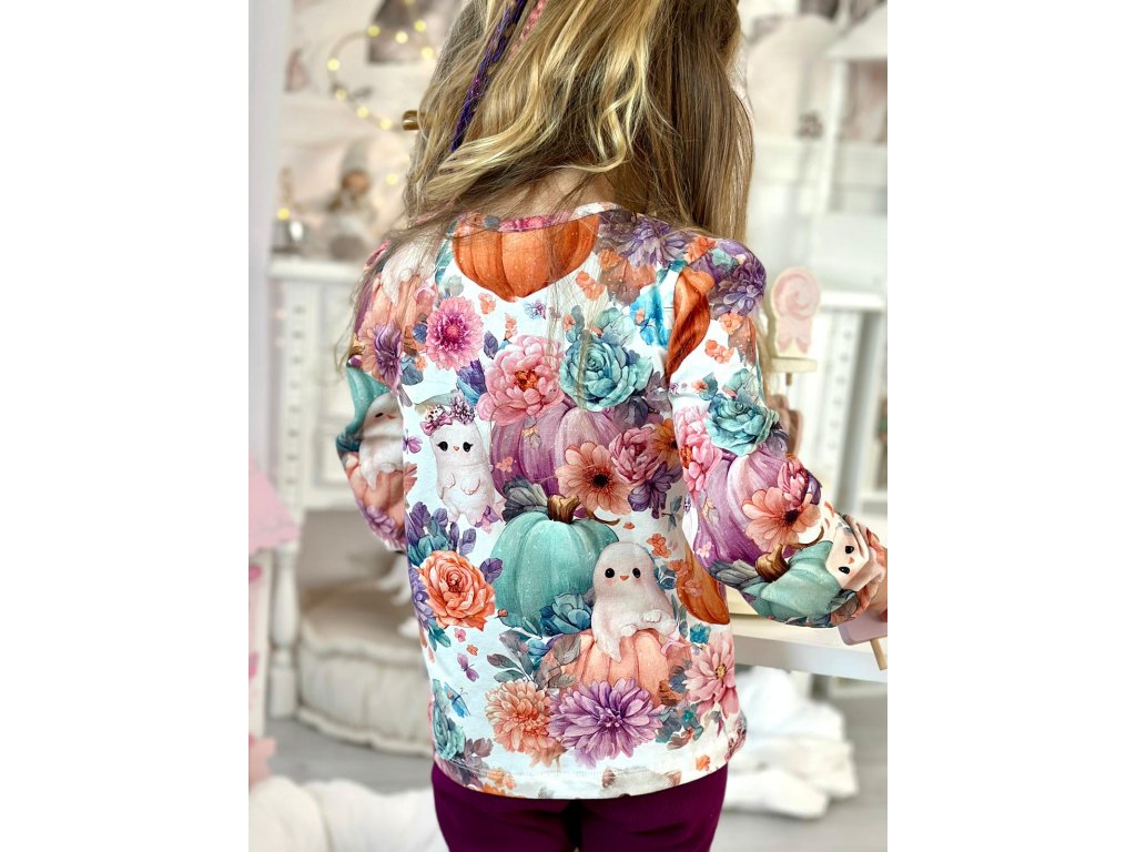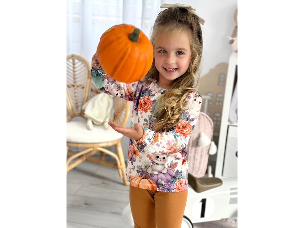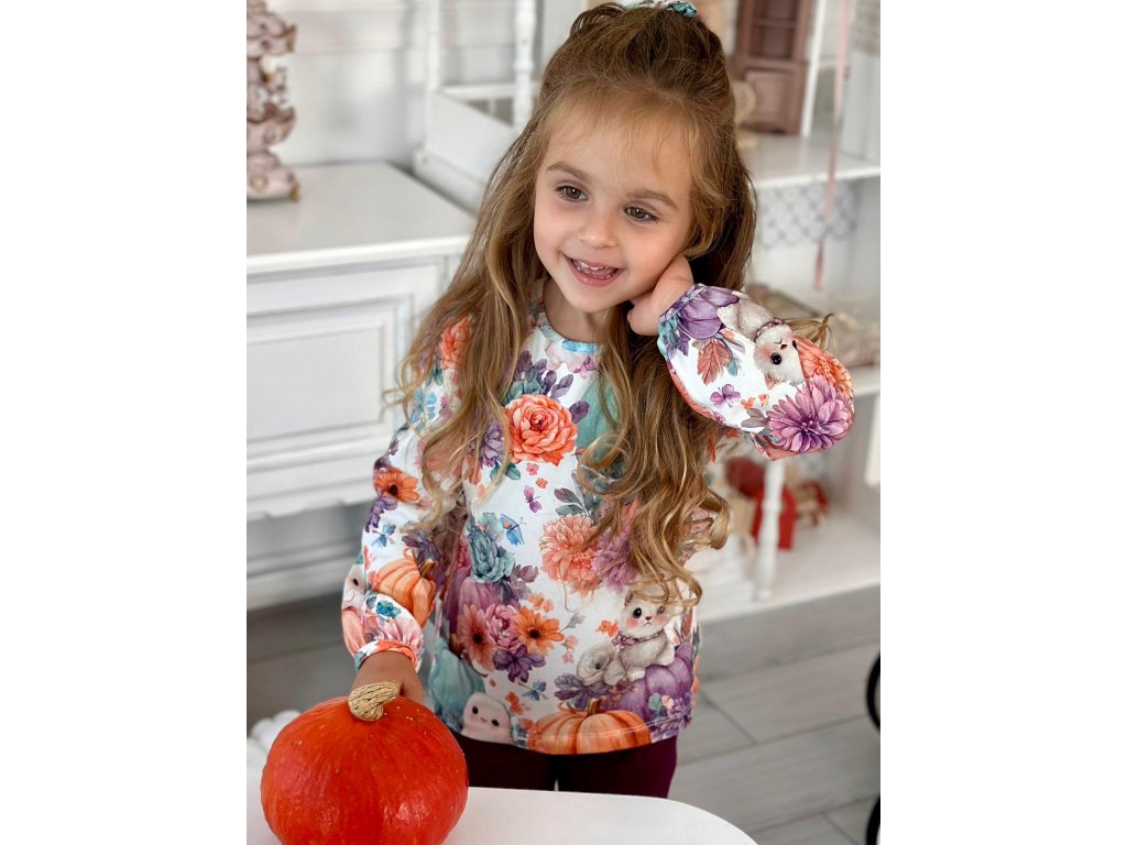 Nádherná bavlněná halenka s podzimním potiskem dýní a květin.