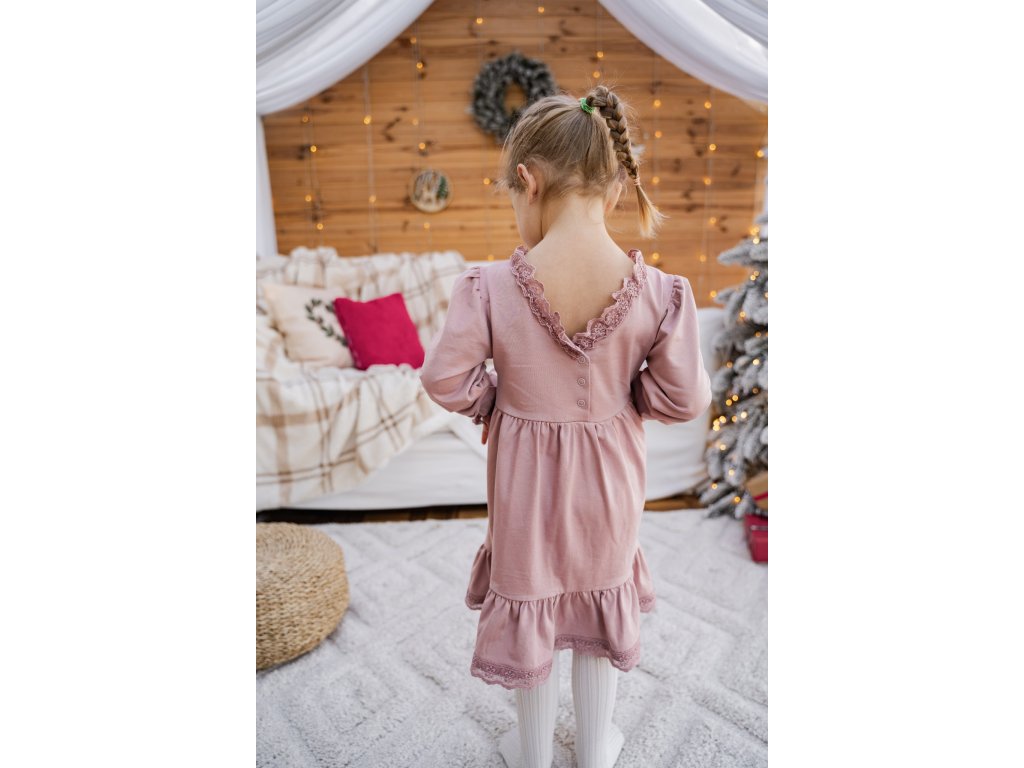 Krásný detail s krajkou do V na zádech. Rukávy i spodní lem zakončené krajkou.